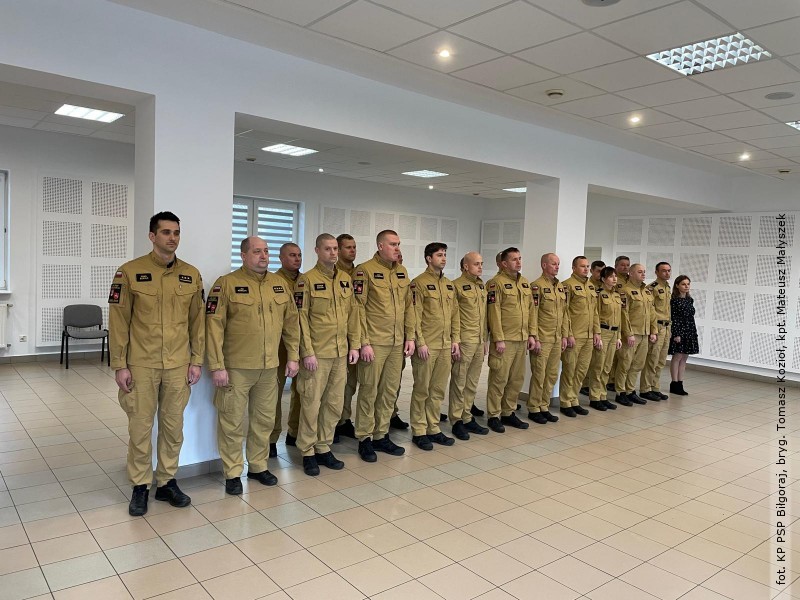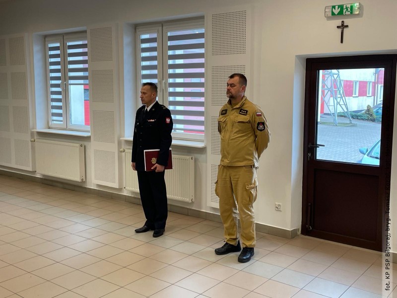 Strażacy z Komendy Powiatowej Państwowej Straży Pożarnej w Biłgoraju odebrali awanse na wyższe stopnie służbowe i nagrody. Uroczysta zbiórka odbyła się w piątek, 14 listopada.