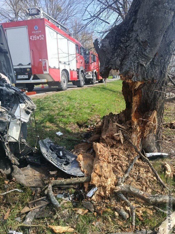 W czwartek 2 kwietnia około godziny 10:15 dyżurny krasnostawskiej komendy został poinformowany o zdarzeniu drogowym na DW nr 842 w miejscowości Wola Żółkiewska (gm. Żółkiewka). Z przekazanych informacji wynikało, że samochód osobowy uderzył w drzewo. Na miejsce skierowano policjantów, którzy potwierdzili zgłoszenie.