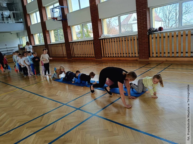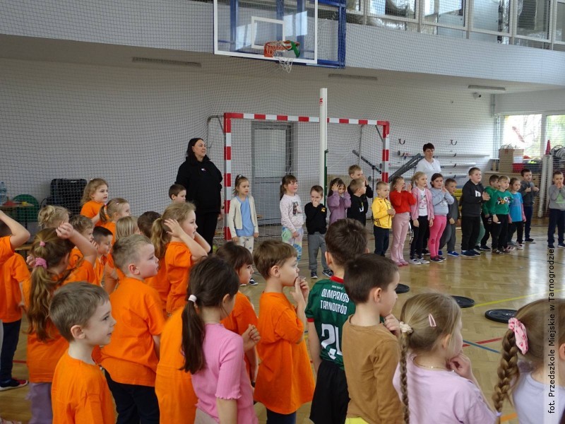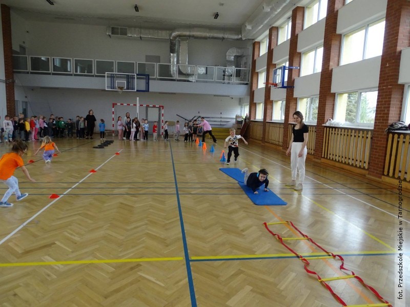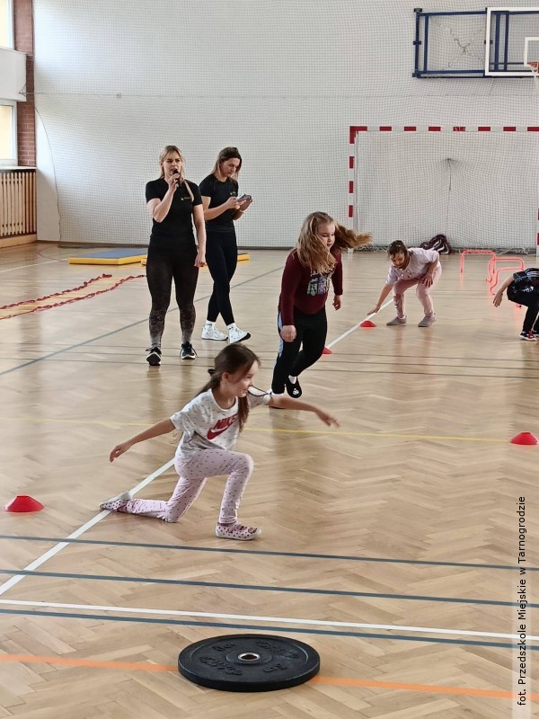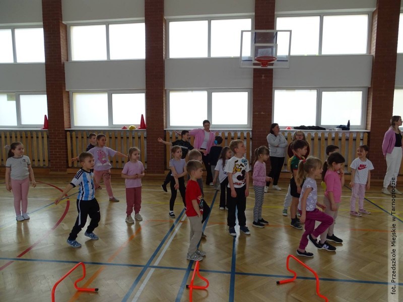 Podczas zajęć dzieci miały okazję aktywnie uczestniczyć w różnorodnych zabawach ruchowych, ćwiczeniach oraz aktywnościach sportowych, które nie tylko sprawiły im ogromną radość, ale również pokazały, jak ważny jest ruch i dbanie o zdrowie każdego dnia.