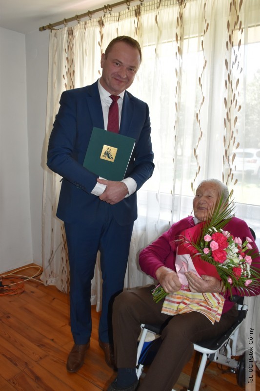 Janina Ćwikła z miejscowości Dąbrówka skończyła sto lat. Z tej okazji dostojną Jubilatkę odwiedził wójt gminy Potok Górny Stanisław Dyjak wraz z kierownik Urzędu Stanu Cywilnego Justyną Zabłotnią, którzy w imieniu własnym oraz całej społeczności gminy złożyli najserdeczniejsze życzenia, a także wręczyli listy gratulacyjne, kwiaty i prezent.